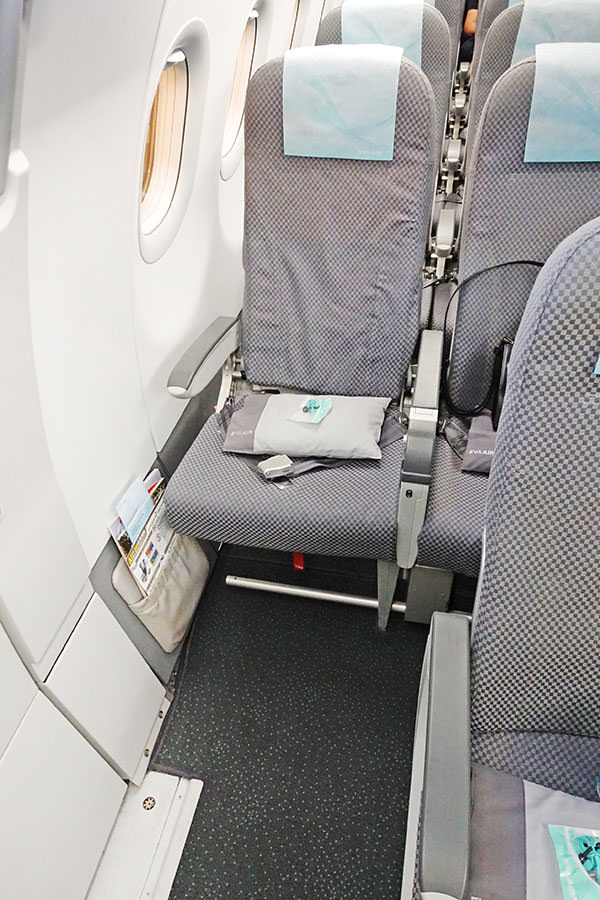 屁股都還沒坐熱就發現椅墊會滑動,感覺遇到亂流容易滑出去有點危險,告知空姐後眼看無法馬上修復,就幫我們換到37排的加價座了 XD (各航空比價)
