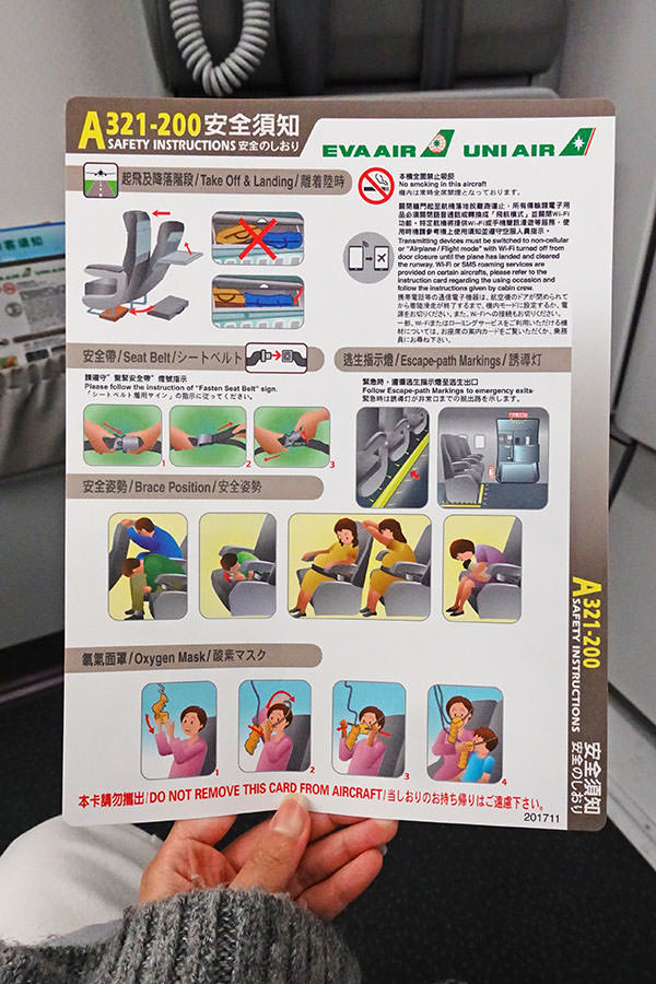 坐在安全門前,空姐馬上請我們閱讀安全須知,也告訴我們若發生事故要請我們幫忙指引乘客、聽到逼逼聲也要幫忙打開安全門,雖然是坐在安全門邊的例行告知,不過聽完還是有點小緊張😢,不管飛了幾次我都還是很怕坐飛機,覺得機組人員真的好偉大R!!