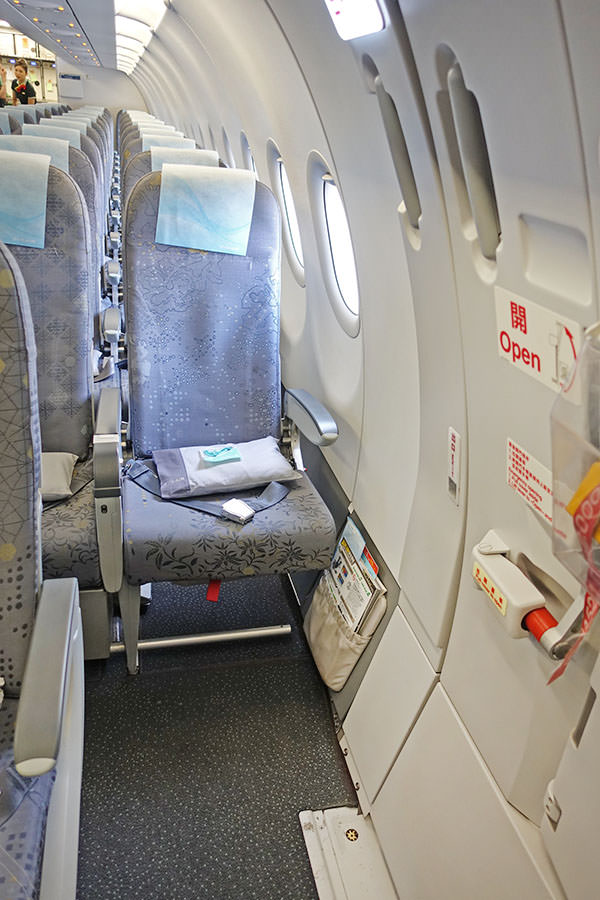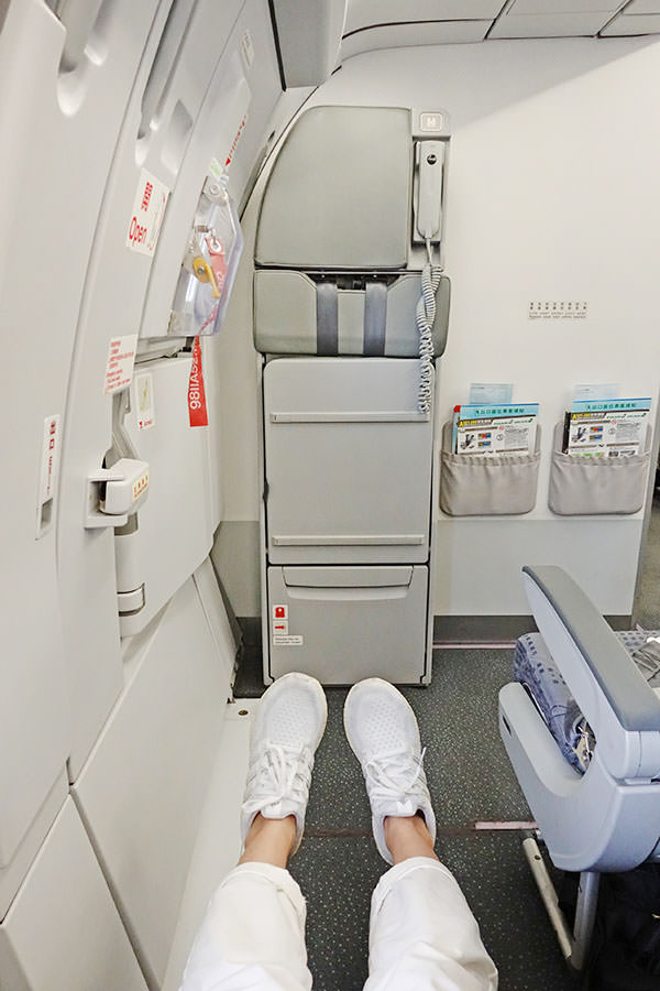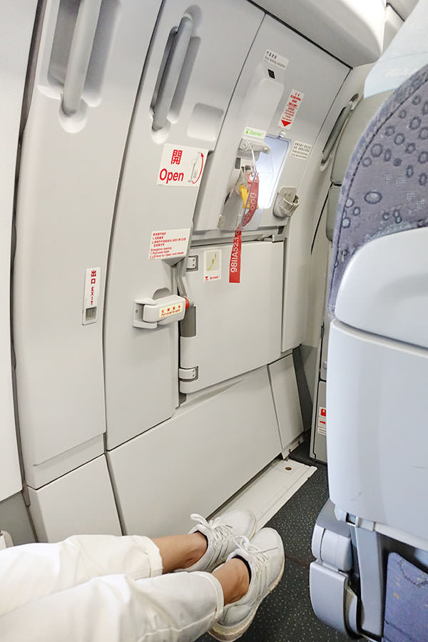 飛機逃生門第一排的座位前方較空、伸展空間足夠,但首排都需要加價~
