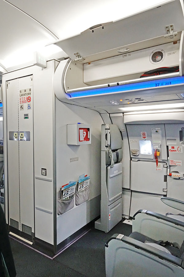 第三區座位首排 37A、37C、37H、37K 這幾個加價坐其實離廁所最近,我們回程就坐這 (參考回程 BR705 分享)