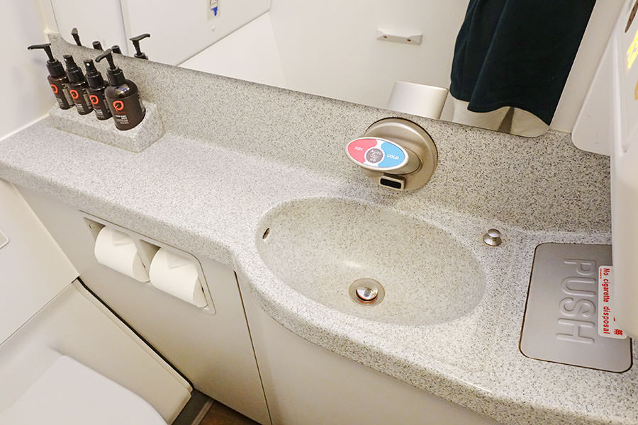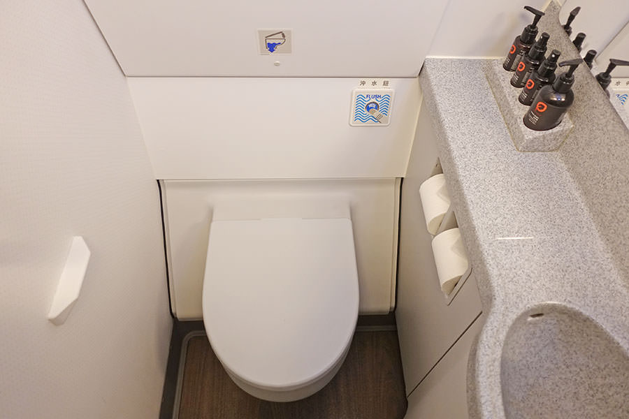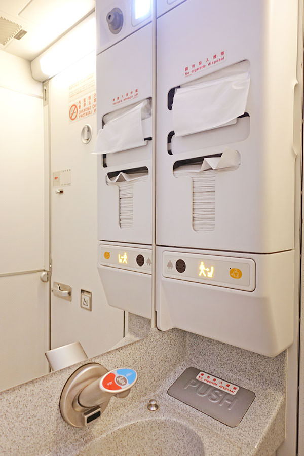 廁所空間不大,中規中矩,飛機十之八九都會有的配置