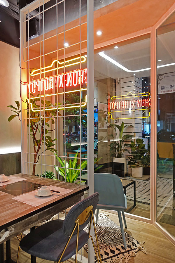 春囍打邊爐 七賢店 一樓的裝潢風格非常網美系,門口就規劃了一區很美的拍照區,店員還清一色都是帥哥,哈哈鎖定的客群很明顯唷~