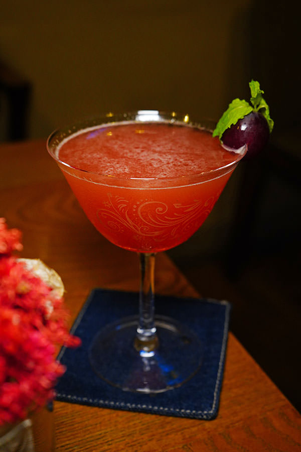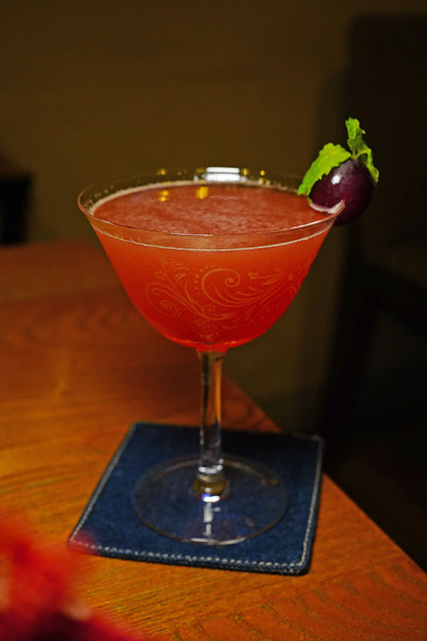 調酒元素:琴酒、阿普羅開胃酒、巨峰葡萄利口酒、自製萊姆汁、新鮮葡萄、新鮮薄荷葉