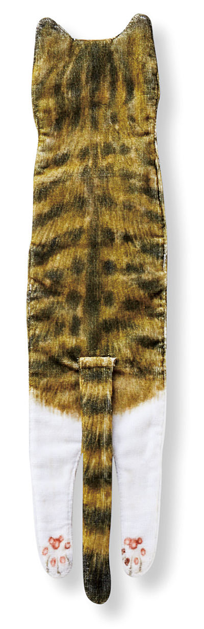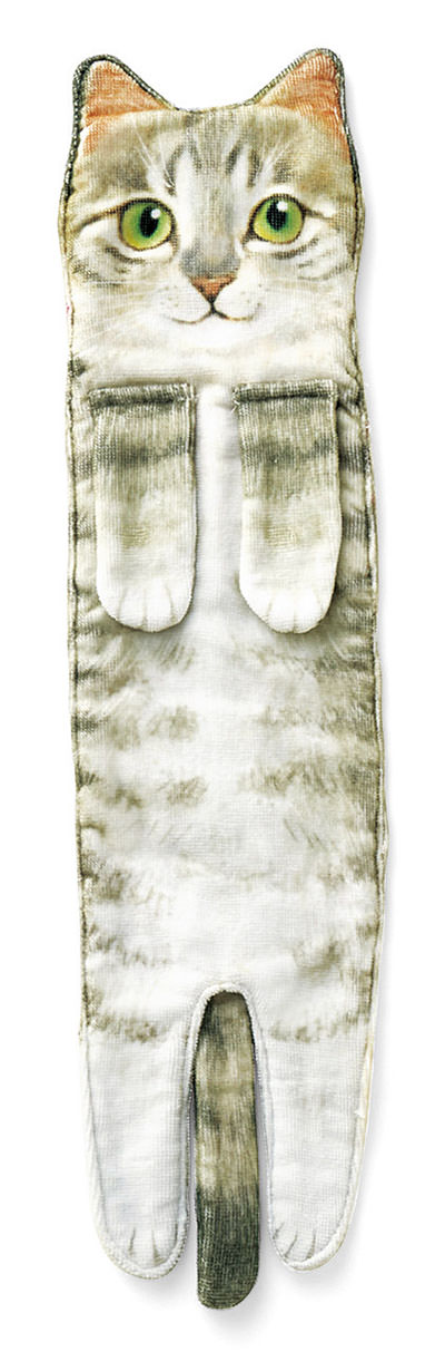 貓咪毛巾創作的靈感來自於把貓咪抱起時身體可以無限延長的有趣畫面,而且牙牙本來身體就比一般貓咪還長怎麼可以不買 (常常把他抱起來頭已經上來了腳還在地板都覺得很搞笑XDD)
