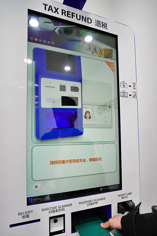 - 出境前:2樓出境大廳1號門附近找 Tax Refund,有人工諮詢櫃台也有機器