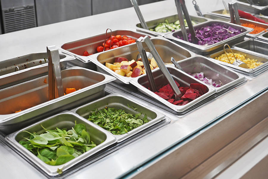 除了檯面上看得到的食材,這邊還有一個調味料的 Taste Buds Flavor Bar,顧客可以選擇多種醬料或香料作搭配,自由度很高