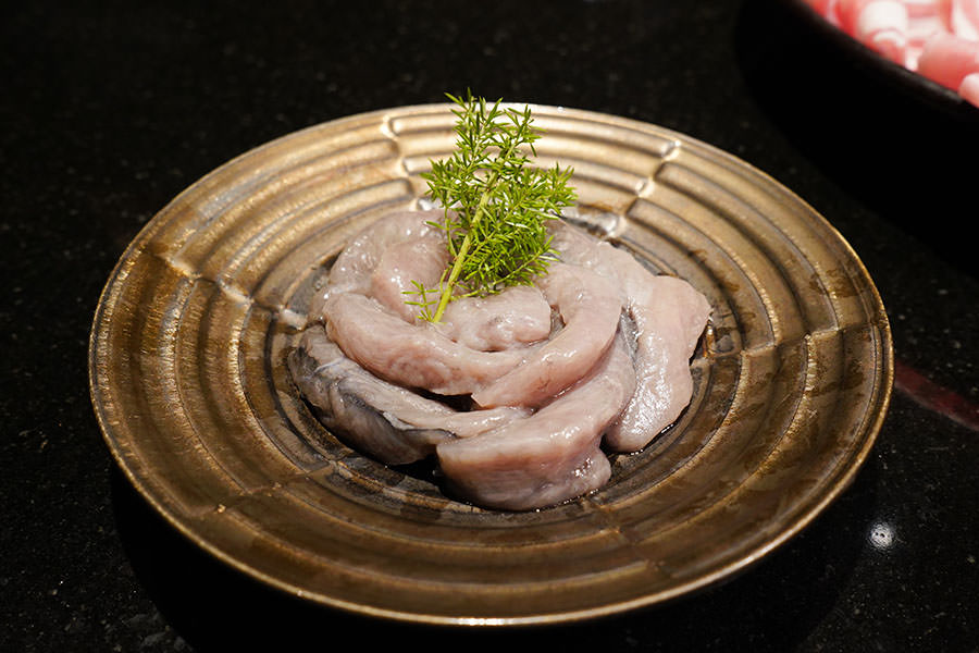 特選牛肉的部位,號稱下鍋輕涮三秒即可起鍋,半熟牛肉入口即化、要是煮至全熟油脂部分又會變得有些脆有些Q彈,覺得三秒升天台灣牛是適合喜歡油花多的饕客。