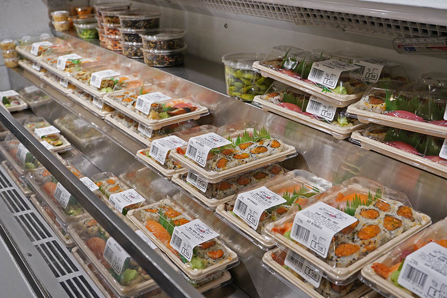店內有一區是賣魚的,觀光客都是看看而已,一旁還有販售快餐盒可以拿了就走