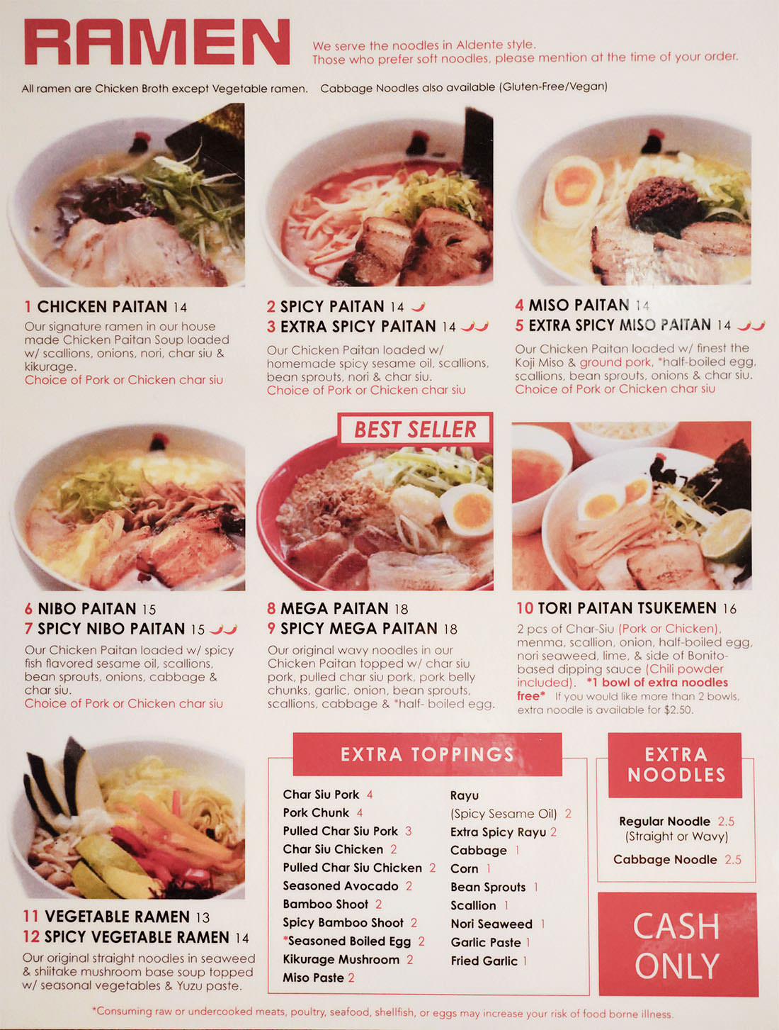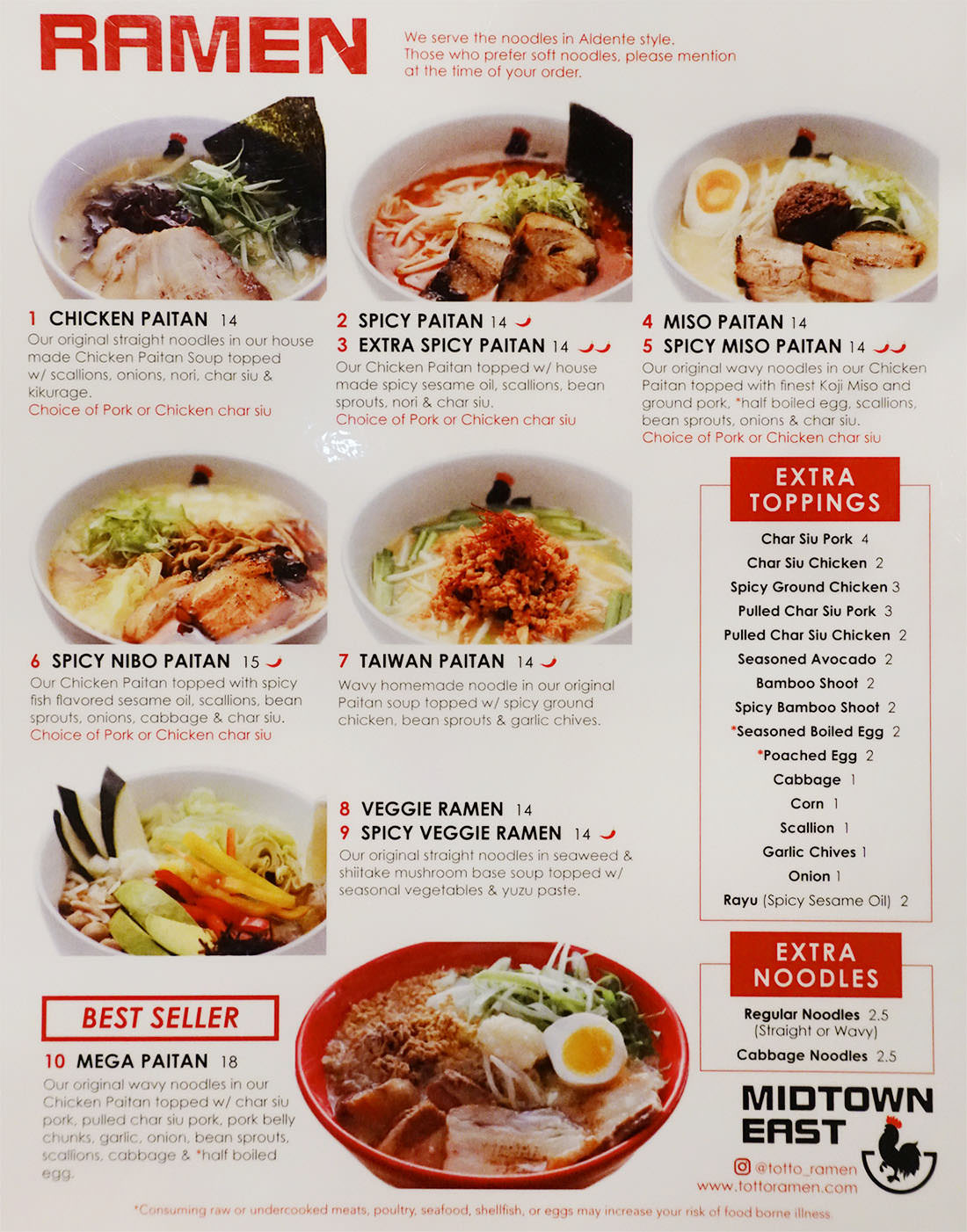 仔細比對之後發現 Midtown East 多了台式口味 Taiwan Paitan、而本店則是有 Tori Paitan Tsukemen、Nibo Paitan,還是有些微的不一樣~