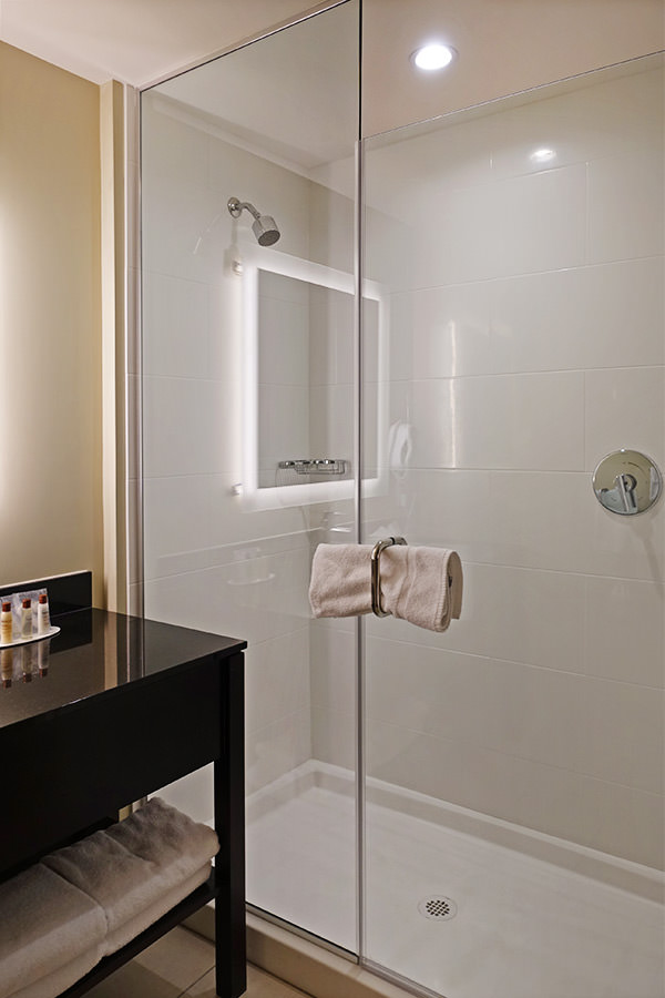 洗手間也算是寬敞的,而且有乾濕分離,雖然是 2018 新飯店,但我還是不喜歡蓮蓬頭是固定式的><