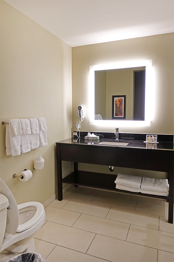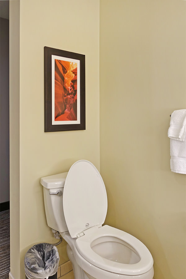 Wingate by Wyndham Page / Lake Powell 房間、廁所的牆面都掛著羚羊峽谷、馬蹄灣的照片,推廣 Page, Arizona 佩吉旅遊